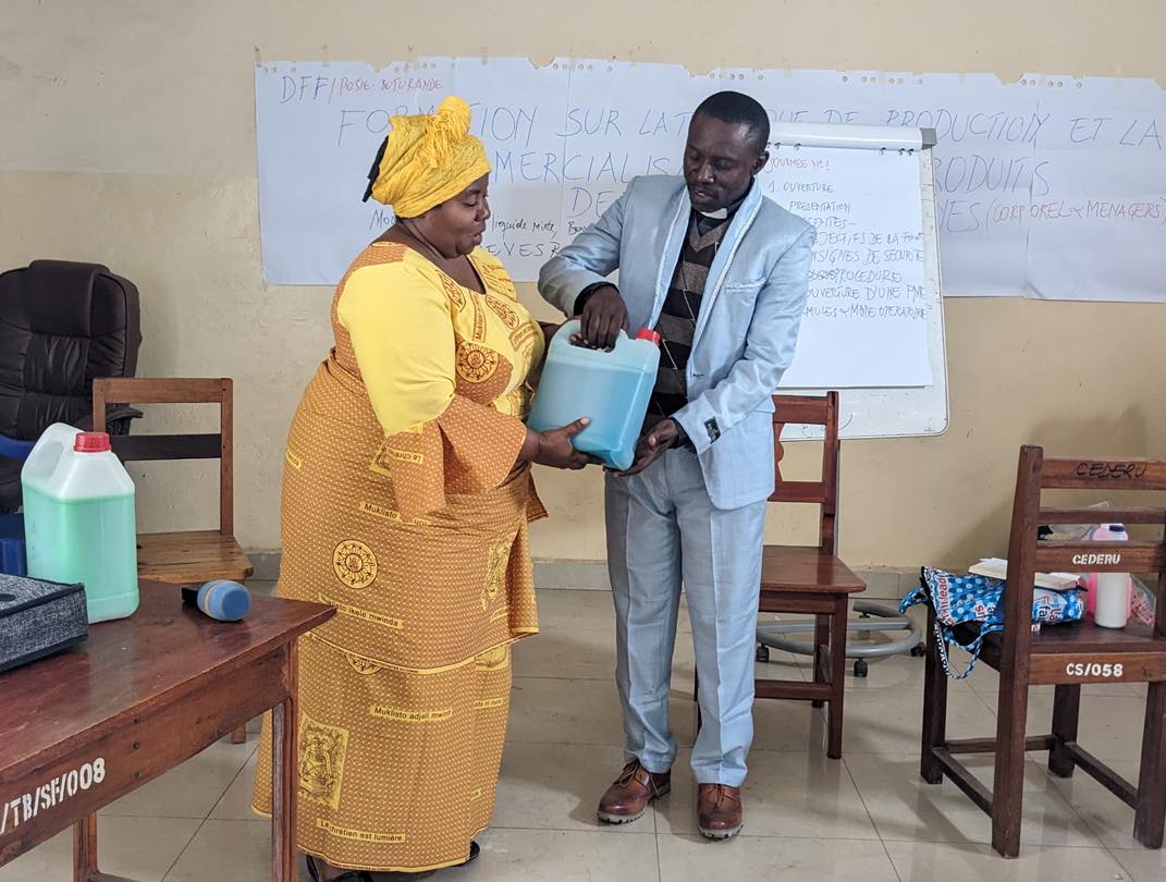 Les participantes ont remerciée le DFF-CBCA pour cette initiative, maintenant qu’elles sont capables de produire le savon liquide mixte, baveclore, champooing, gel de douche et eau de javel.